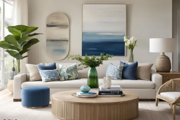 به جای پردههای ضخیم، از پارچههای نازک و سبک استفاده میشود تا نور و نسیم دریا آزادانه جریان پیدا کند. گیاهان آپارتمانی با برگهای سبز تیره نیز برای افزودن طراوت و پیوند با طبیعت به کار میروند.